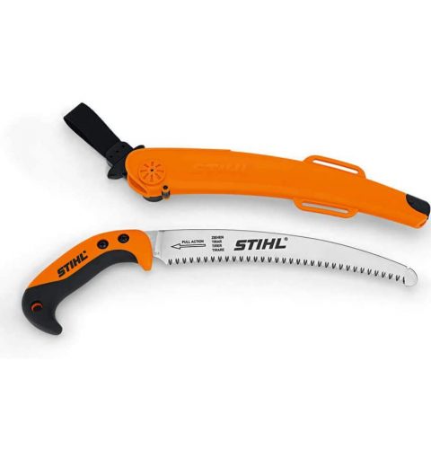 With a curved saw blade for pressure-free sawing, including in tree maintenance work. Made from impulse-hardened chrome steel; conical saw blade shape; ergonomic dual-component handle.
